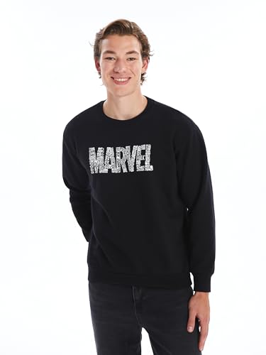 LC WAIKIKI - LC واكيكي سويت شيرت سميك برقبة دائرية ضيقة واكمام طويلة مطبوع عليه مارفل للرجال