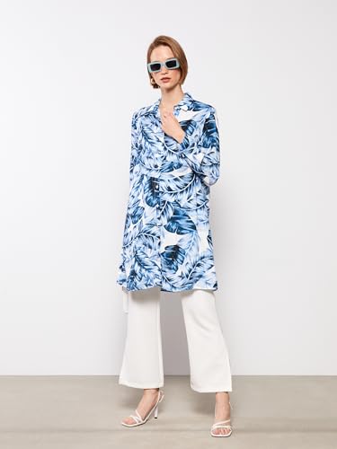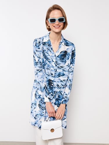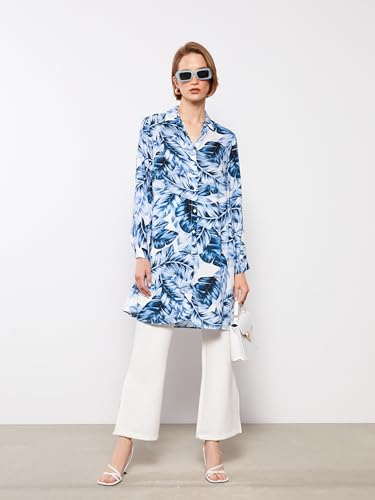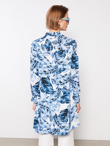 LC WAIKIKI - بلوزة طويلة بتصميم قميص منقوشة بأكمام طويلة للنساء من ال سي وايكيكي