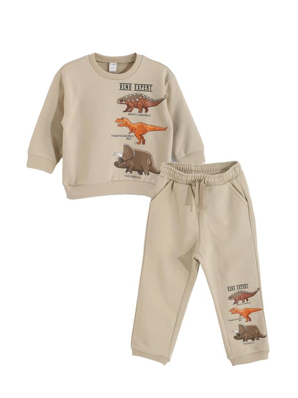 LC WAIKIKI - LC واكيكي طقم مكون من سويت شيرت وبنطلون مطبوع للاولاد الرضع من قطعتين