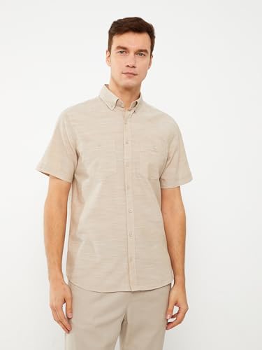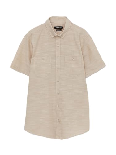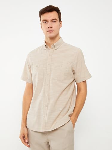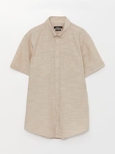 LC WAIKIKI - LC واكيكي قميص بقصة عادية واكمام قصيرة من قماش البوبلين للرجال S33965Z8-Qyx-2 M بيج