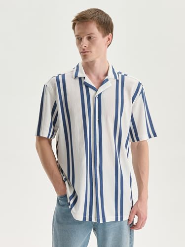 LC WAIKIKI - قميص مخطط من قماش دوبي بقصة عادية وأكمام قصيرة للرجال من ال سي وايكيكي