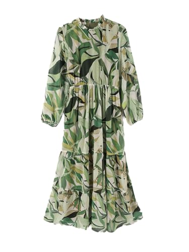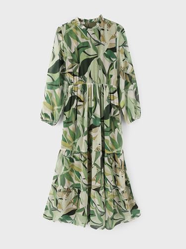 LC WAIKIKI - فستان نسائي بياقة مكشكشة وأكمام طويلة مزين بالزهور من ال سي وايكيكي