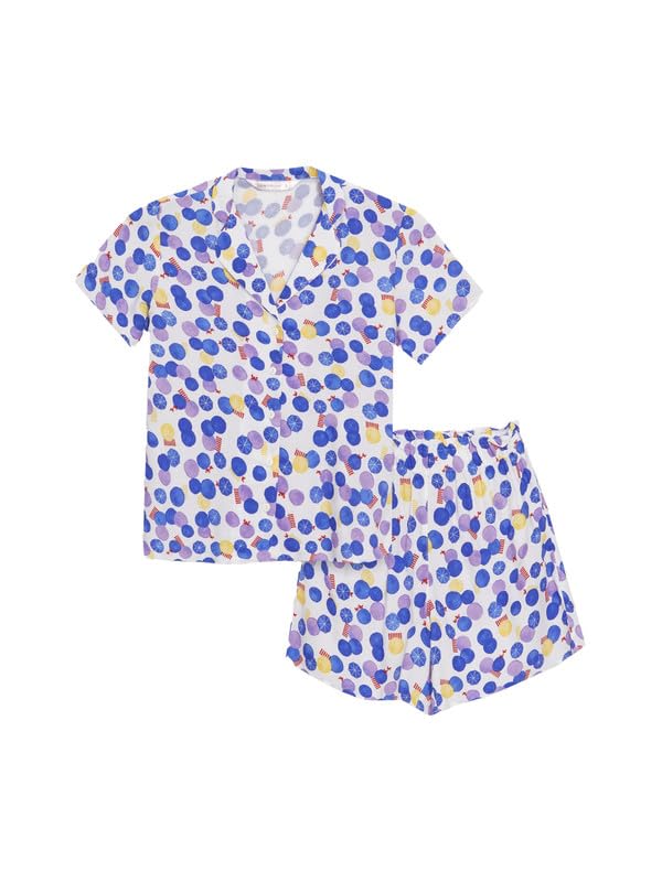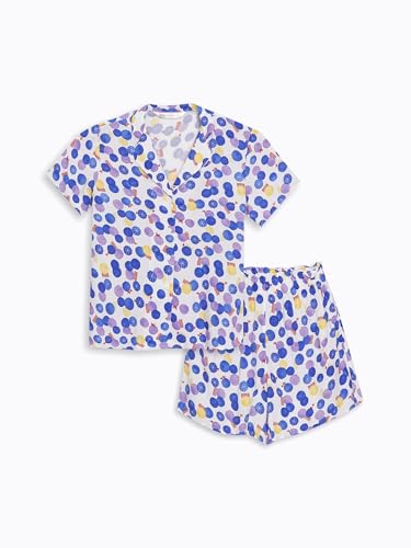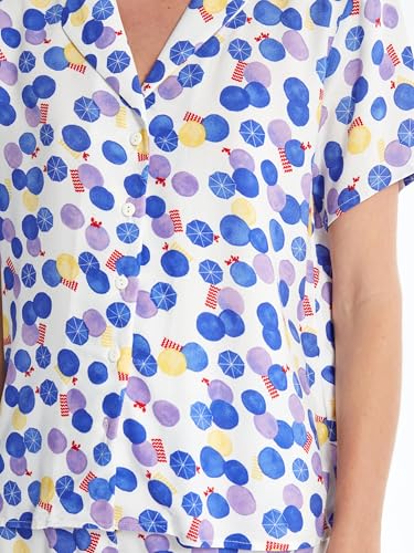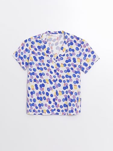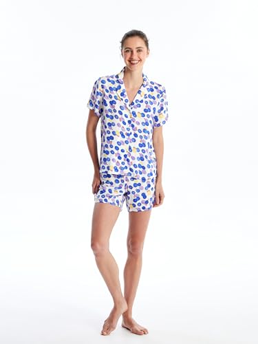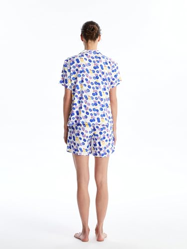 LC WAIKIKI - LC واكيكي طقم بيجامة منقوشة باكمام قصيرة وقبة قميص للنساء S4Gs34Z8-Lu8-1 M ابيض مطبوع