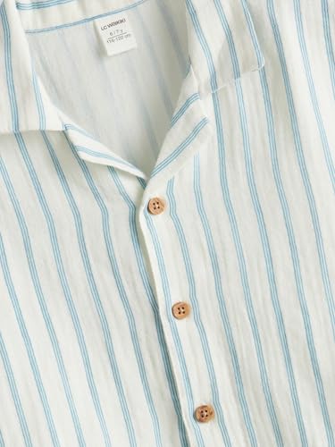 LC WAIKIKI - قميص مخطط بأكمام قصيرة للأولاد من ال سي وايكيكي، بيج