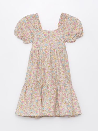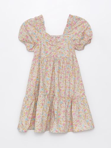 LC WAIKIKI - LC واكيكي فستان بناتي باكمام قصيرة وقبة مربعة مزين بالزهور