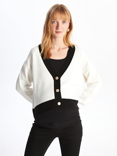 LC WAIKIKI - كارديجان تريكو بقصة واسعة وعادية وأكمام طويلة ورقبة V للنساء من ال سي وايكيكي