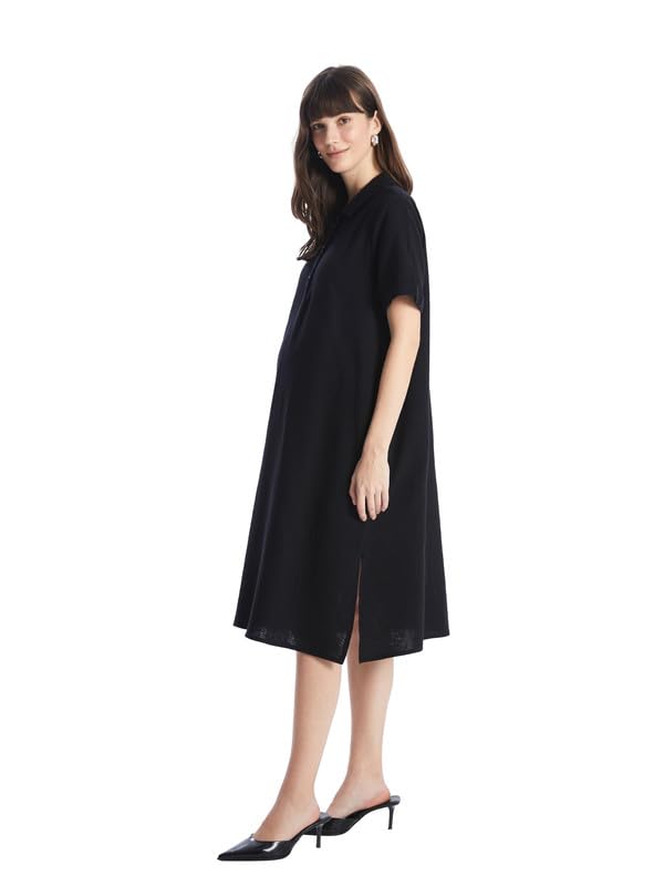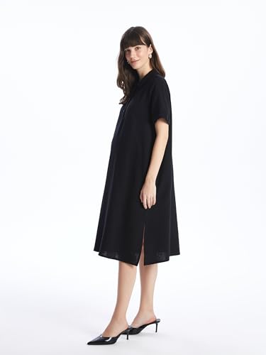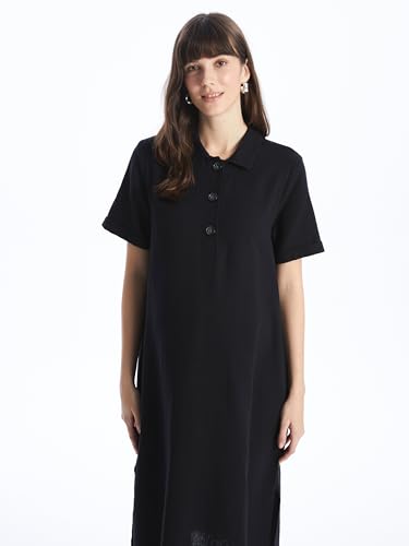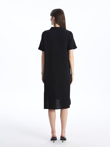 LC WAIKIKI - LC واكيكي فستان حمل سادة برقبة بياقة واكمام قصيرة للنساء مقاس كبير