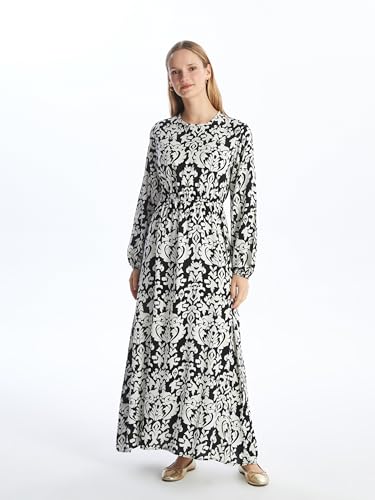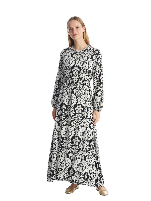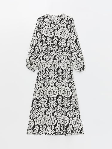 LC WAIKIKI - فستان مزين بنقشة وبأكمام طويلة ورقبة دائرية ضيقة للنساء من ال سي وايكيكي