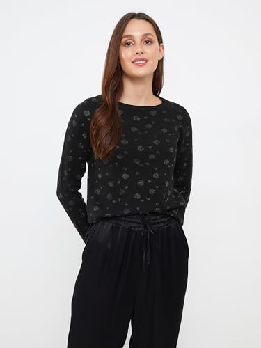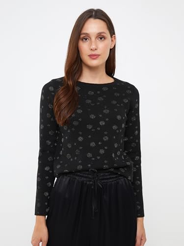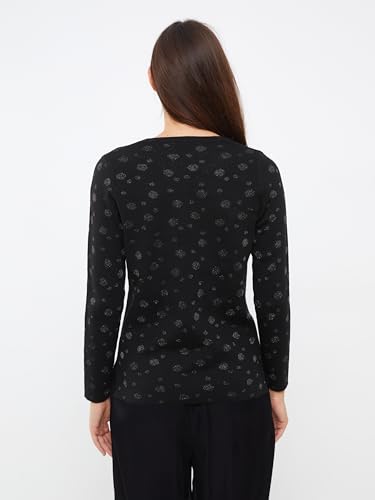 LC WAIKIKI - بلوزة بدون أزرار بنقشة وأكمام طويلة ورقبة دائرية ضيقة للنساء من ال سي وايكيكي