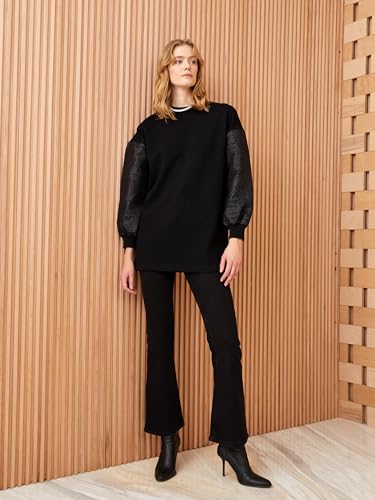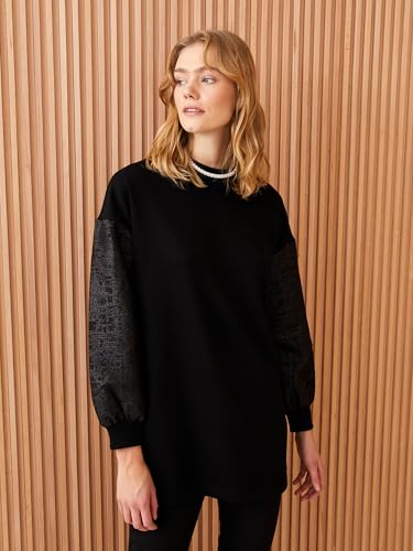 LC WAIKIKI - بلوزة طويلة مطبوع برقبة دائرية وأكمام طويلة من ال سي وايكيكي للنساء