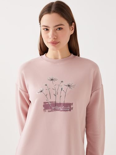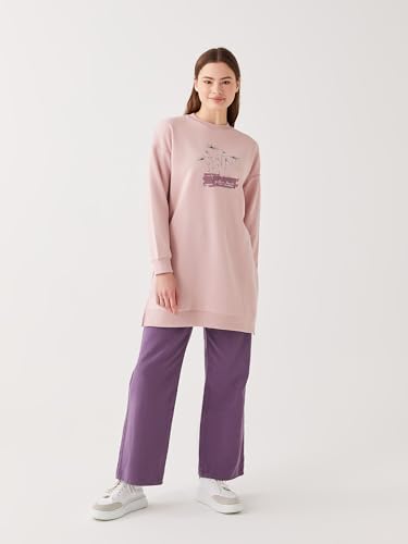 LC WAIKIKI - LC واكيكي سويت شيرت طويل مطبوع برقبة دائرية ضيقة واكمام طويلة للنساء