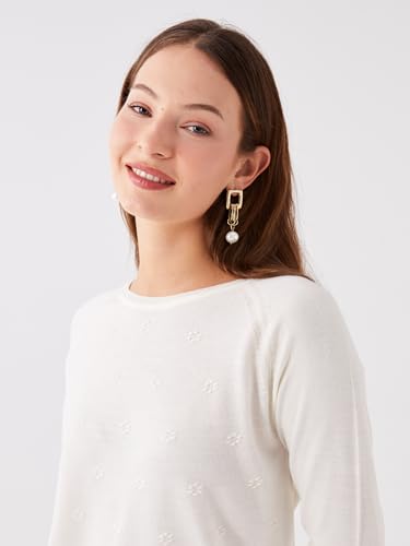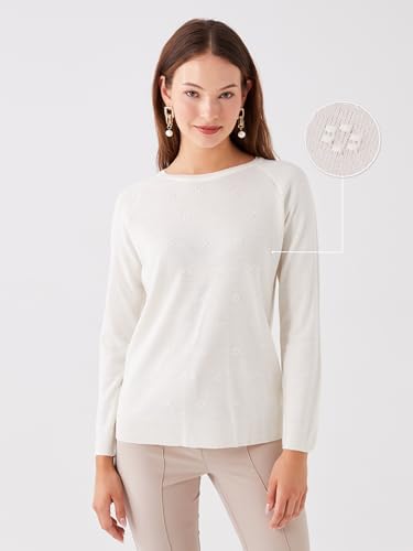 LC WAIKIKI - بلوفر صوف بنقشة ذاتية وبرقبة دائرية ضيقة للنساء من ال سي وايكيكي