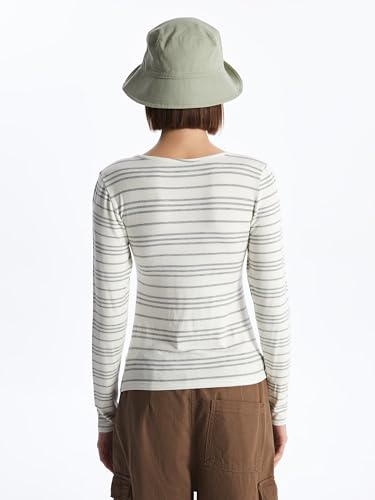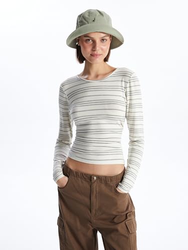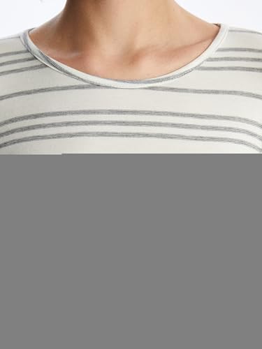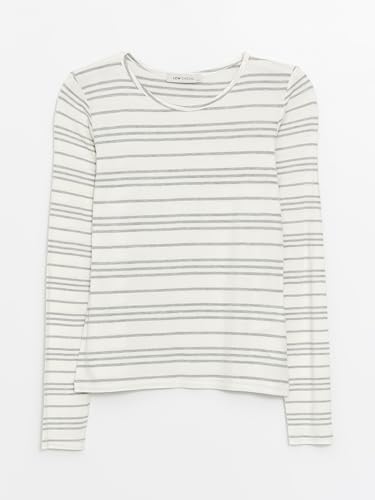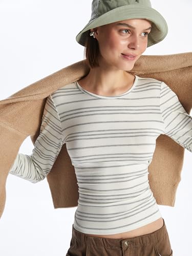 LC WAIKIKI - تيشرت مخطط بأكمام طويلة ورقبة دائرية ضيقة للنساء من ال سي واكيكي