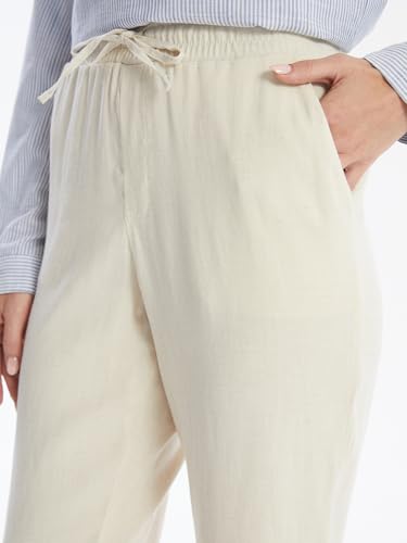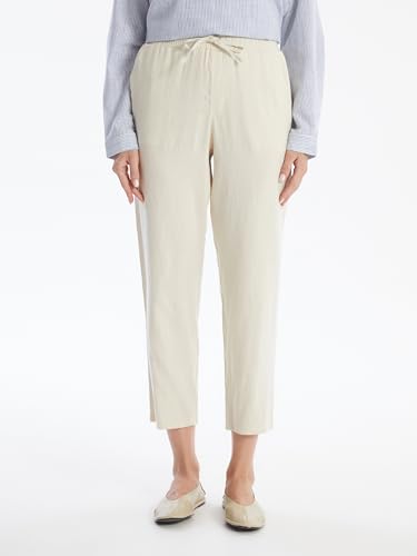 LC WAIKIKI - بنطلون سادة من مزيج الكتان باستك عند الخصر للنساء من ال سي وايكيكي
