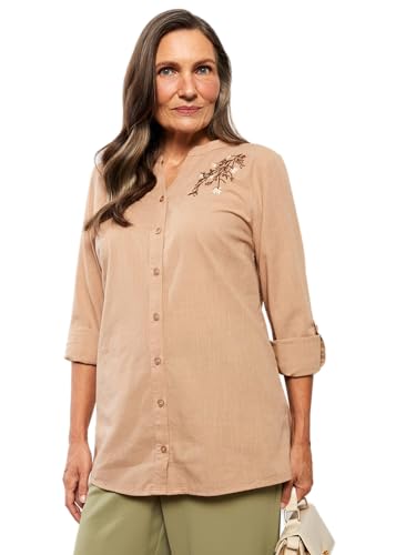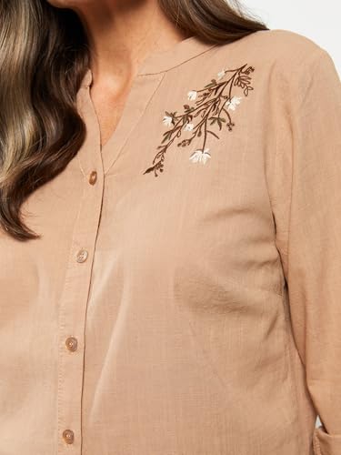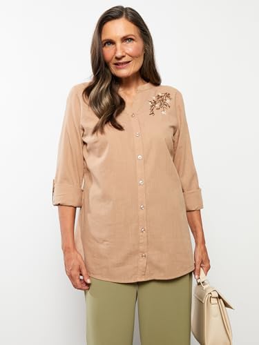 LC WAIKIKI - LC واكيكي قميص قطن مطرز باكمام طويلة ورقبة دائرية للنساء