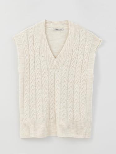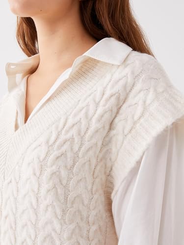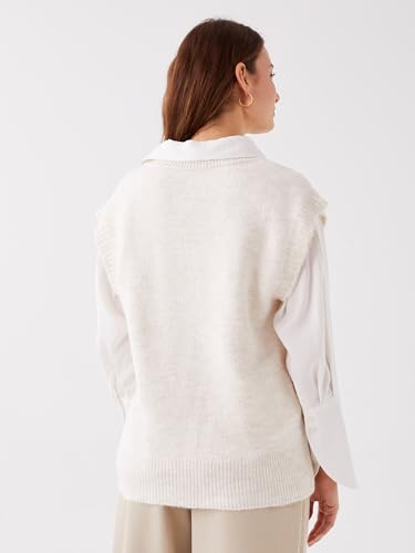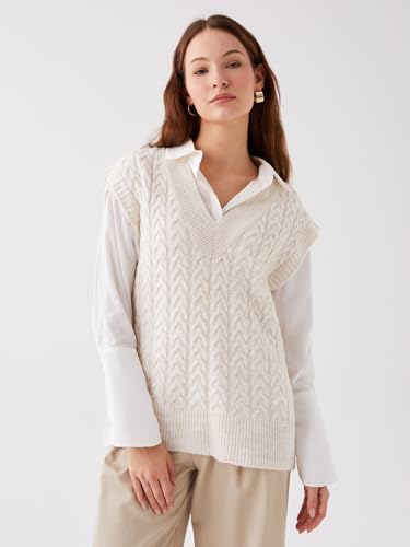 LC WAIKIKI - بلوفر صوف مخطط برقبة V ومقاس كبير للنساء من ال سي وايكيكي