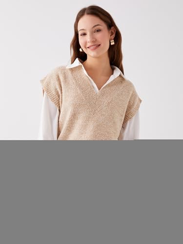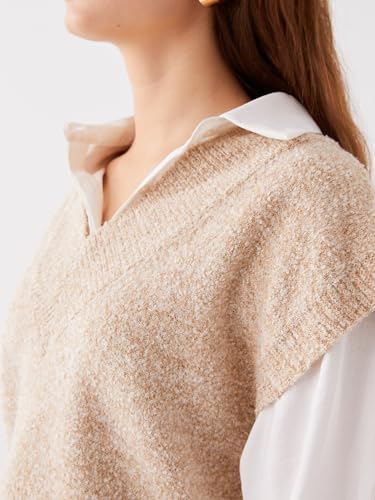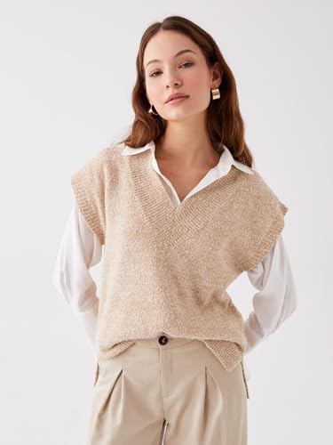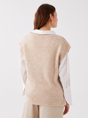LC WAIKIKI - LC واكيكي سترة صوفية سادة كبيرة الحجم برقبة على شكل حرف V للنساء
