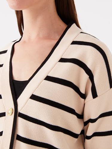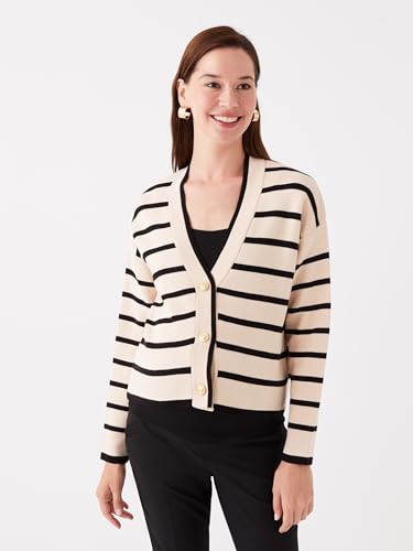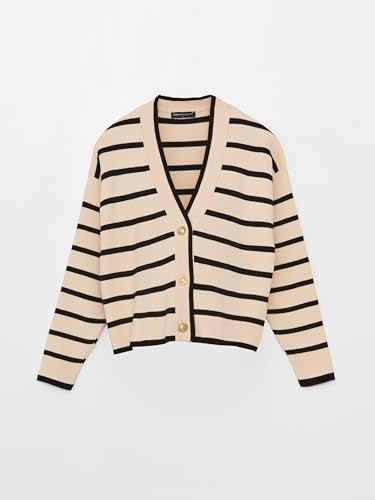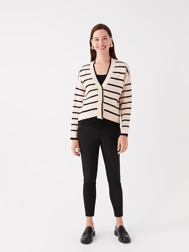 LC WAIKIKI - كارديجان بتصميم تريكو مخطط بأكمام طويلة وياقة على شكل V للنساء الحوامل من ال سي وايكيكي