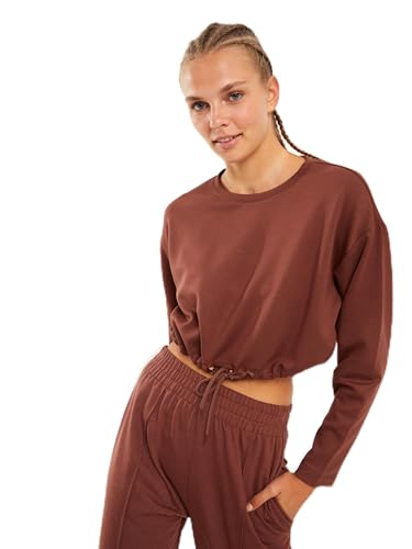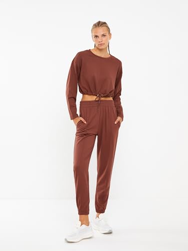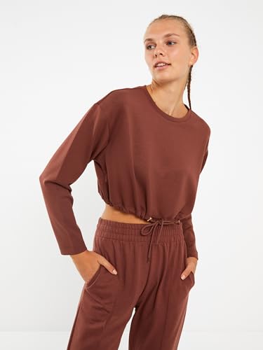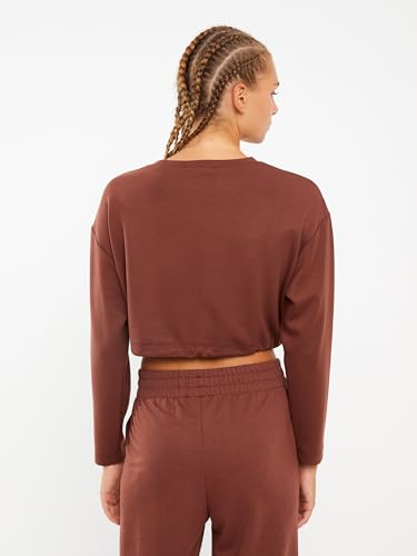 LC WAIKIKI - سويت شيرت قصير بقصة عادية ورقبة دائرية ضيقة وأكمام طويلة للنساء من ال سي واكيكي