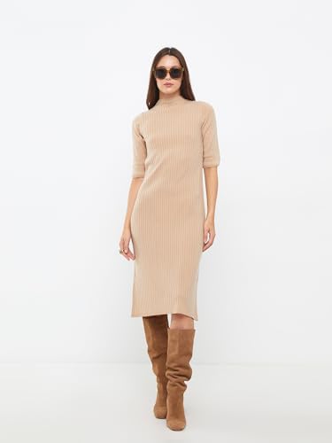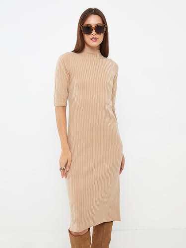 LC WAIKIKI - فستان محبوك نسائي بياقة مرتفعة ضيقة وأكمام قصيرة من ال سي وايكيكي