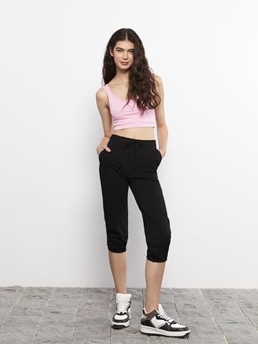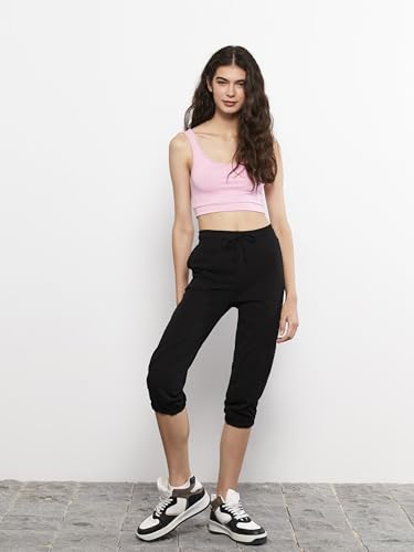 LC WAIKIKI - LC واكيكي بنطلون رياضي كابري بخصر مطاطي وجيب مسطح للنساء S2G594Z8-Rqn-2 M اسود
