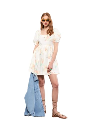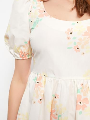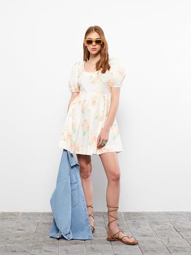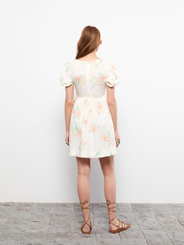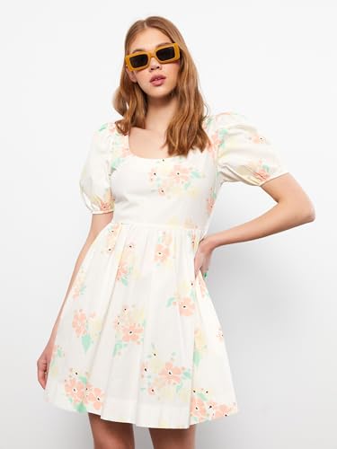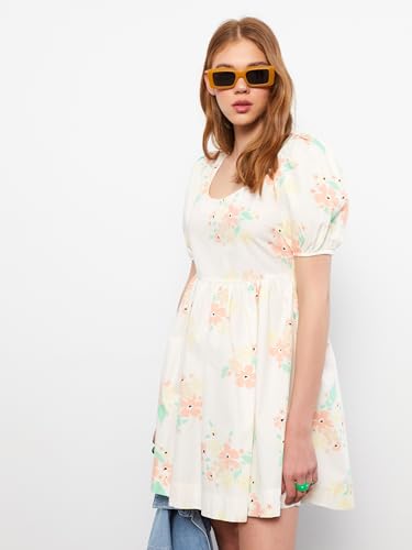 LC WAIKIKI - LC واكيكي فستان قطن باكمام قصيرة ورقبة على شكل حرف U للنساء S2J061Z8-Lra-1 Xs بيج فاتح مطبوع