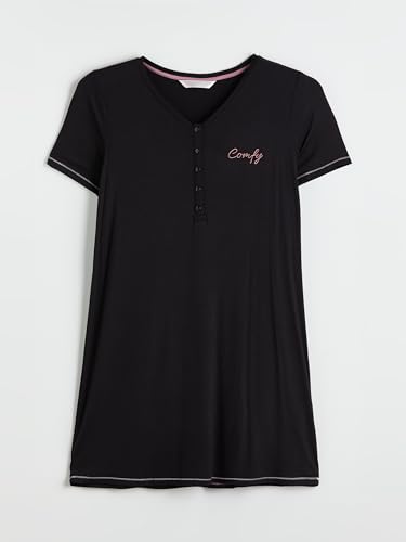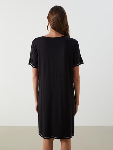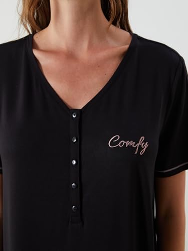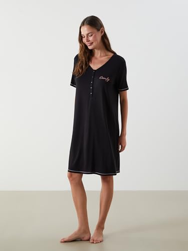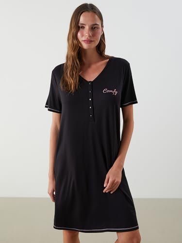 LC WAIKIKI - فستان نوم مطرز بأكمام قصيرة وقبة على شكل حرف V للنساء من ال سي وايكيكي
