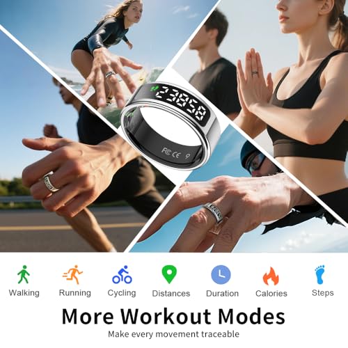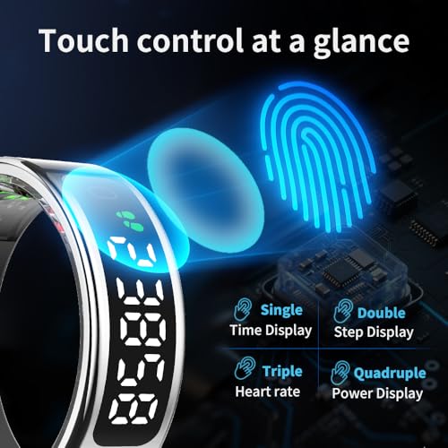 UouNeaCo - خاتم ذكي بشاشة ال سي دي، تحكم باللمس لتتبع النوم مع معدل نبضات القلب/الأكسجين في الدم/عداد خطوات، قاعدة شحن لاسلكية، جهاز تتبع اللياقة البدنية مقاوم للماء حتى عمق 5 ايه تي ام، بدون رسم اشتراك (فضي 9)