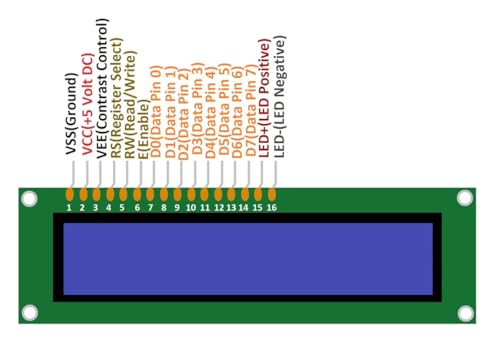 - 📘 يعرض 16 × 2 حرف مع وحدة تحكم متوافقة مع HD44780.