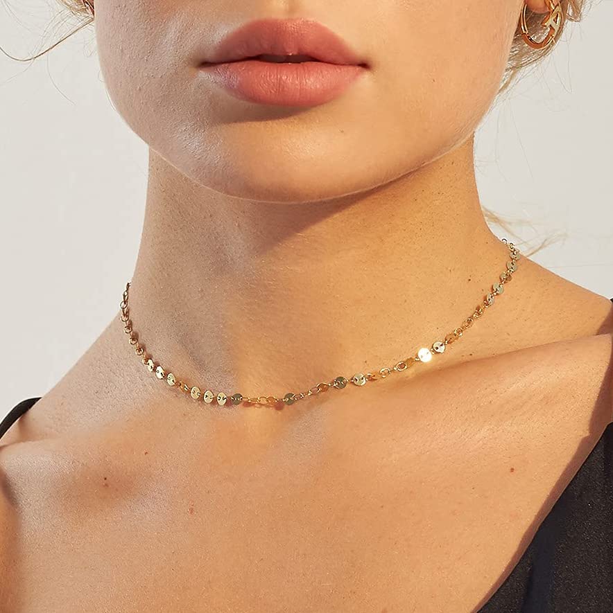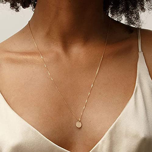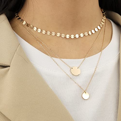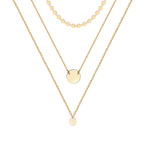 Lcherry - طوق ضيق انيق ثلاثي الطبقات مع دلاية بتصميم عملة معدنية وقرص، مطلي بذهب عيار 14K للنساء