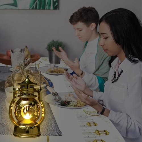 LCHYI - فانوس رمضان بتصميم عبارة «Eid Mubarak» من ال سي اتش واي اي، مصباح شمعة بتصميم قلعة قمر، ديكور طاولة رمضان، فانوس رمضان معلق للمنزل والاماكن الخارجية والعطلات والحفلات وهدايا العيد