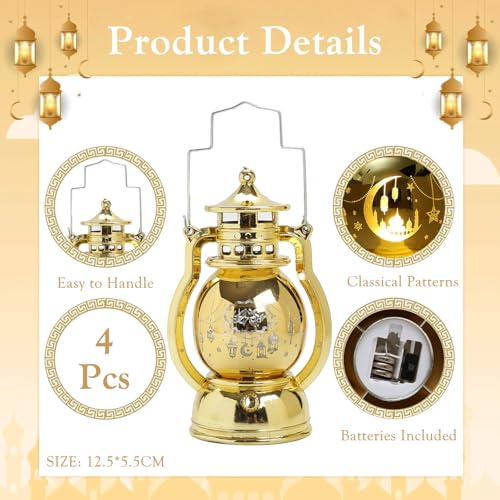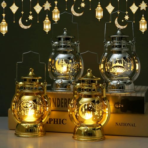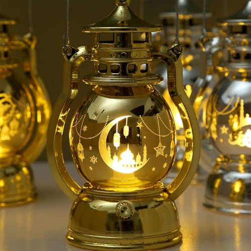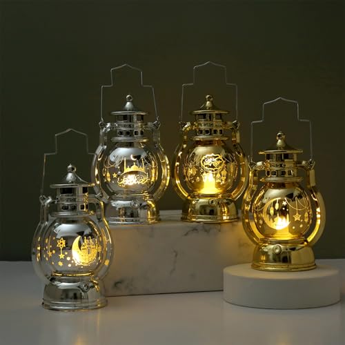 - زينة العيد: تحتوي عبوة فانوس رمضان والعيد المحمول على أربع قطع ذات زخارف جميلة وغامضة للقمر والقلعة متشابكة على الفوانيس الذهبية والفضية. إنها الزينة المثالية لمنح جو احتفالي، سواء في الأماكن المغلقة أو المفتوحة، والتي يمكنها أن تعزز على الفور جمال المكان وتجعلك تشعر بالسحر الفريد للمهرجان.