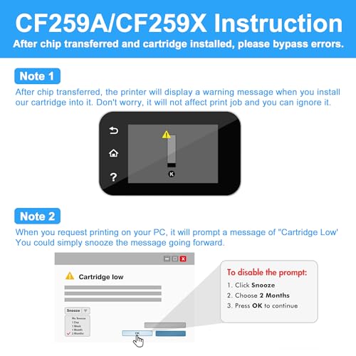- ✅【ملاحظات الشراء】إذا كان الكمبيوتر يقول "خرطوشة منخفضة جدًا"، يرجى النقر على زر "غفوة" واختيار "شهرين". لن يؤثر ذلك على استخدامك العادي.