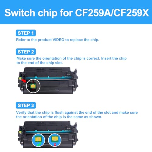 - ✅【ملاحظات الشراء】خرطوشة حبر LCL متوافقة مع CF259A 59A/CF259X 59X بدون رقاقة. يرجى استخدامه مع رقاقة خرطوشة الحبر الأصلية المحجوزة الخاصة بك. يرجى الرجوع إلى الفيديو التعليمي الجانبي لاستبدال الشريحة. نحن مسؤولون عن توفير أدوات استبدال الرقاقة. يرجى التحقق من موضع تركيب رقاقة الرجوع إلى الصورة بجانب صورة المنتج.