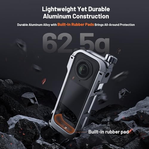 - 【مقاس مخصص لـ Insta360 X5 فقط】مصمم حصريًا لـ Insta360 X5، يضمن هذا القفص المصبوب بدقة عدم إعاقة الأزرار أو باب البطارية أو العدسة أو الميكروفون. تم تصميم الفتحة العلوية بعناية لتقليل تداخل الإشارة، والحفاظ على أعلى أداء أثناء التصوير.