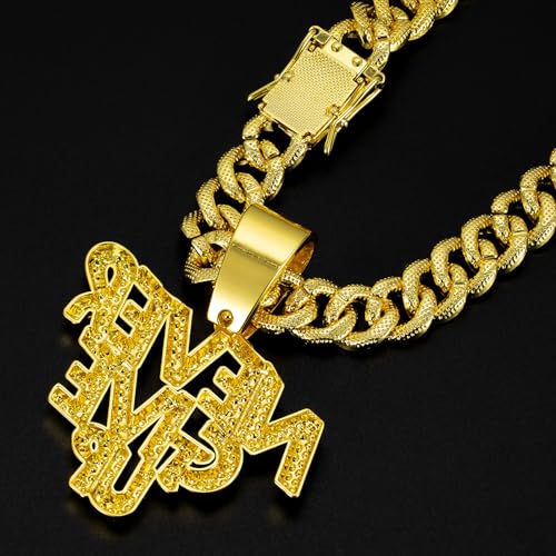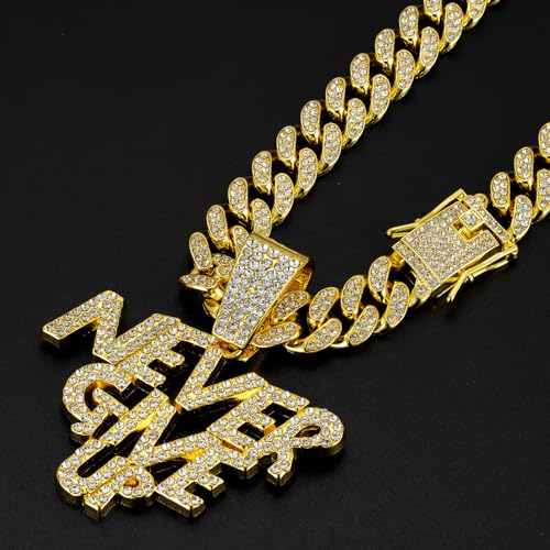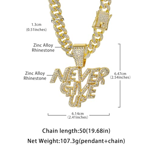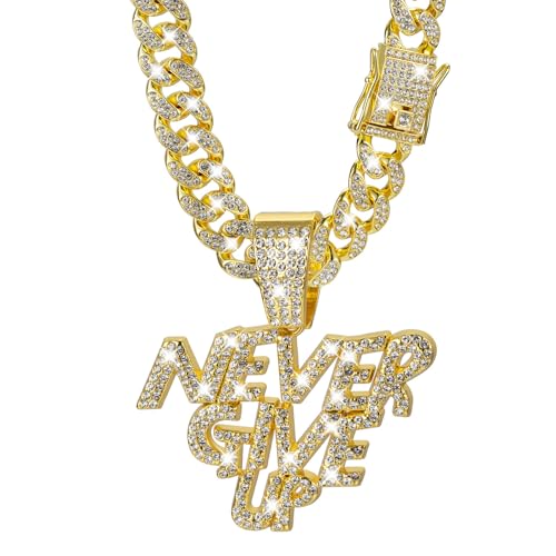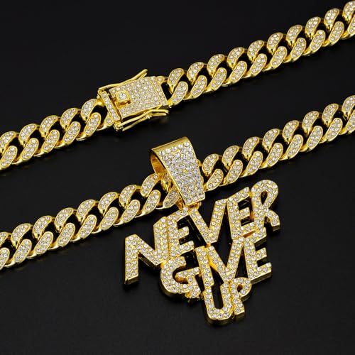 LCWLJL - NEVER GIVE UP Hip-hop Cuban Chain, Rhinestone Pendant Necklace Jewelry For Men,Men's Fashion Jewelry