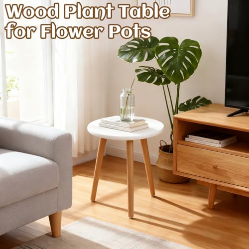 LDHHYH - حامل نباتات داخلي من ال دي اتش اتش اتش واي اتش، طاولة خشبية لاواني الزهور، حامل نباتات شديد التحمل، ديكور منزلي عصري، طاولة جانبية مستديرة صغيرة، ابيض