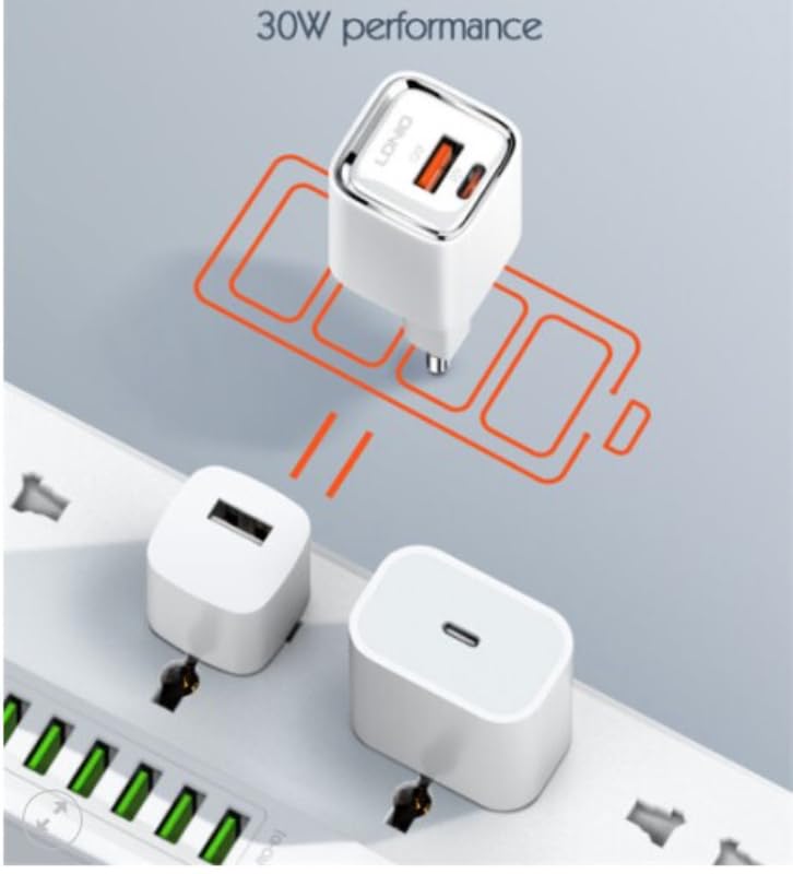- شحن سريع USB-C بقوة 30 وات: يدعم تقنية Power Delivery (PD) بقدرة تصل إلى 30 وات، مما يوفر شحنًا فعالًا لمجموعة متنوعة من أجهزة USB-C مثل الموبايلات وأجهزة التابلت.