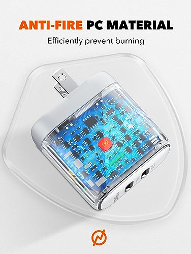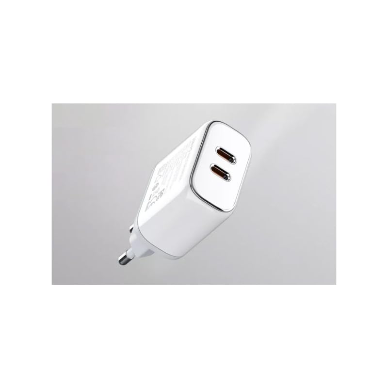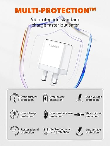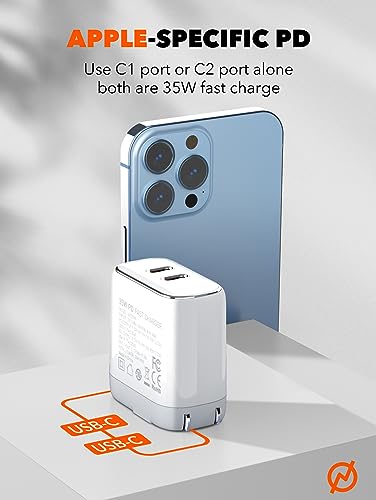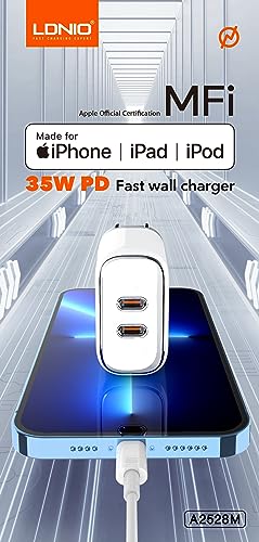 LDNIO - شاحن حائط سريع A2528M بقوة 35 وات من لدنيو بمنفذين USB نوع سي متوافق مع أجهزة آبل آيفون كابل إلى لايتنينج - أبيض