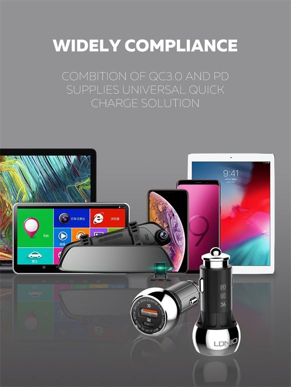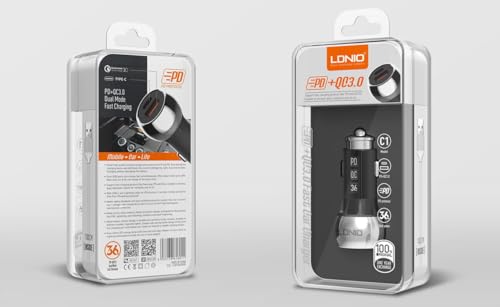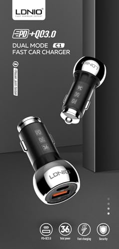 LDNIO - شاحن للسيارة سريع صغير C1 مع منفذي USB بما في ذلك منفذ كيو سي 3.0 ومنفذ USB PD من ال دي ان اي او، يو اس بي، أسود