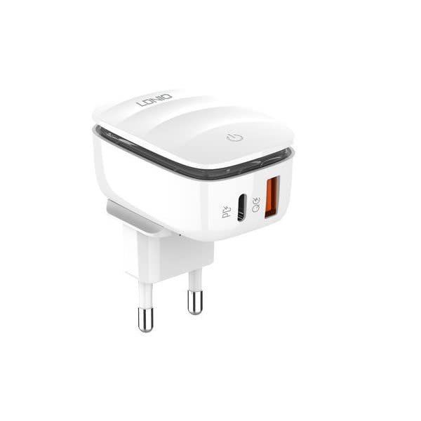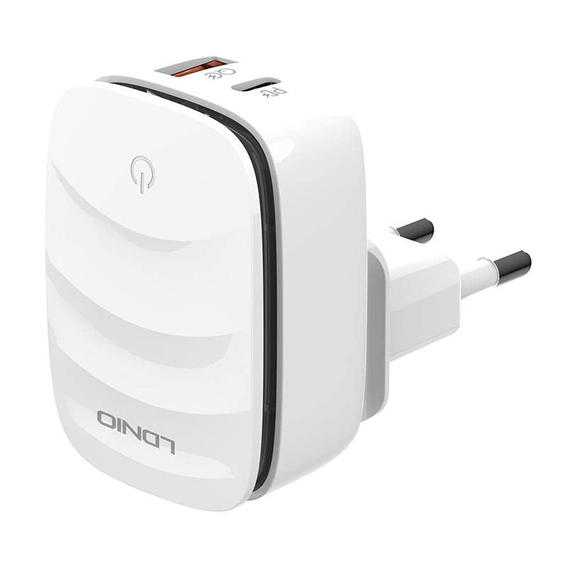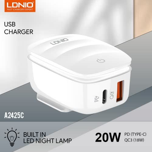 LDNIO - شاحن اوروبي A2425C - مع كابل نوع سي من لدنيو - ابيض، USB