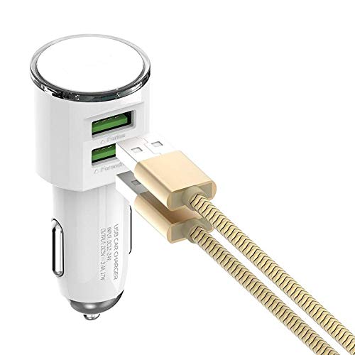 LDNIO - شاحن سيارة سريع DL-C29 مع كابل USB مزدوج وUSB إلى نوع C من ليندو عملي للغاية أثناء القيادة 3.0 أمبير - أبيض