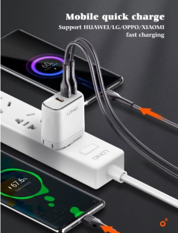 LDNIO - كابل شحن LC651C 65 واط (من منفذ USB - نوع سي إلى منفذ USB - نوع سي) فائق السرعة، مزامنة بيانات عالية، متانة، خلو من التشابك، توافق شامل لأجهزة أندرويد والتابلت وأجهزة USB نوع سي من لدنيو، ذهبي