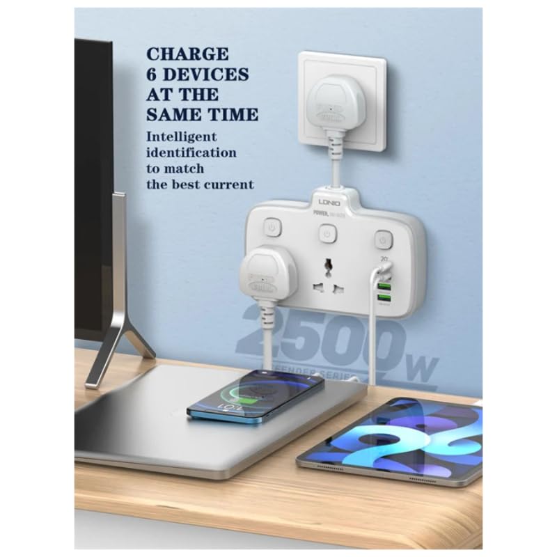 - عندما يكون هناك منفذ تيار متردد واحد فقط على الحائط، فإنه يتيح لك الحصول على مقبسين و4 منافذ USB.