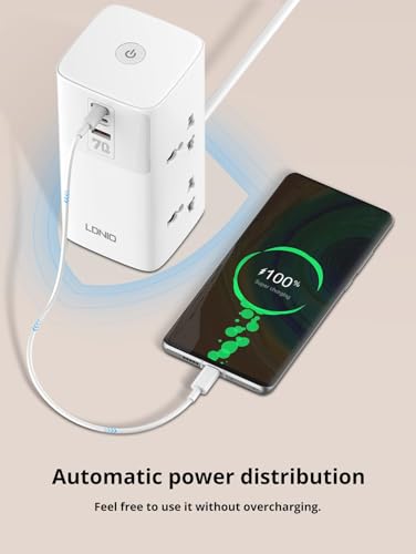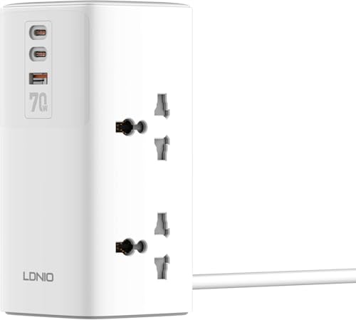 LDNIO - قاعدة شحن عمودية لسطح المكتب من لدينو مكونة من 7 منافذ SC4383، لون أبيض