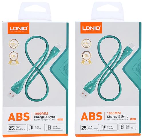 LDNIO - كابل موبايل لايتنينج الى USB-A للشحن السريع ونقل البيانات، 1 متر، قطعتين، ابيض، Ls611 من لدنيو