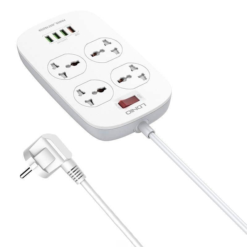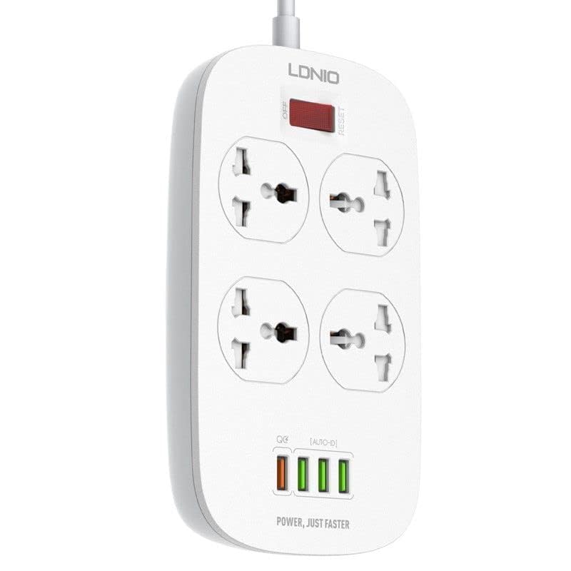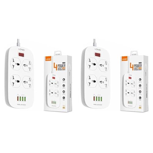 LDNIO - مشترك كهربائي 4 فيشة مزود بـ 4 منافذ USB (بقدرة 18 وات) وكابل بطول 2 متر من لدنيو، لون ابيض قطعتين -Sc4407 Eu