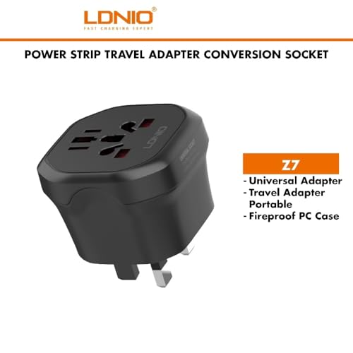 LDNIO - شاحن سفر ستريب كهرباء زد 7 من لدنيو، أسود