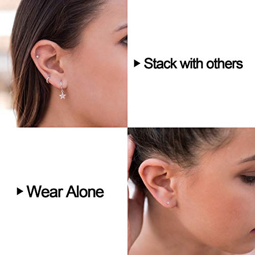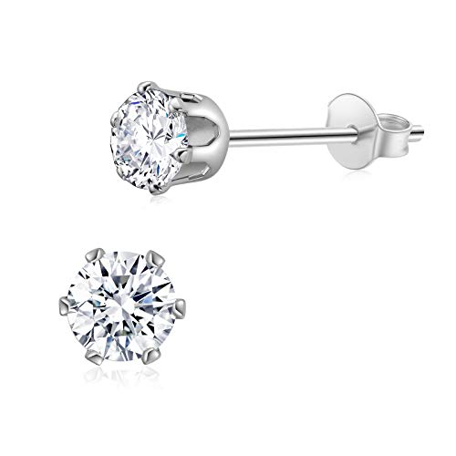 Ldurian - حلقان صغيرة بريمة من الستانلس ستيل مضادة للحساسية للنساء لديوريان حلق للارتداء على غضروف الاذن وفي الثقب الثاني للاذن للمراهقات هدية للبنات مجوهرات فضية مرصعة بالزركونيا المكعب مقاس 3 ملم معدن