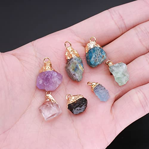 LE SKY - لو سكيه 12 قطعة من دلايات الاحجار الطبيعية غير المنتظمة الشكل، حجر شاكرا خام صغير للشفاء، حجر العقيق الكريستالي لصنع المجوهرات والقلائد والديكور